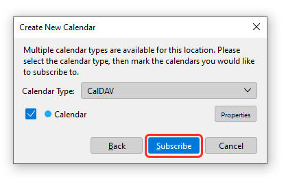 Configuração da sincronização de calendários entre o Mozilla Thunderbird e o Envelope E-Mail.