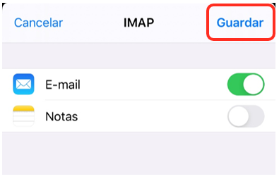 1. Selecione IMAP no topo do ecrã